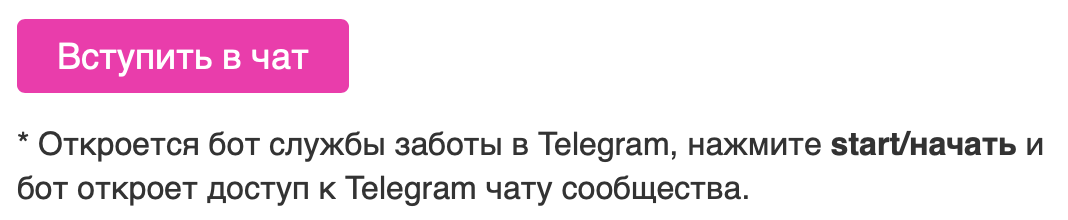 2️⃣ Нажмите на кнопку "Вступить в чат", запустится бот "Службы заботы", нажмите НАЧАТЬ/START, бот отправит доступ к чату резидентов